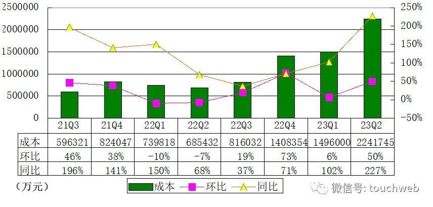 理想汽车2023年第二季度的销售成本为224.2亿元(30.9亿美元),较2022年第二季度的68.5亿元增加227.1%,较2023年第一季度的149.6亿元增加49.9%。销售成本较2022年第二季度及2023年第一季度增加主要由于车辆交付量的增加。