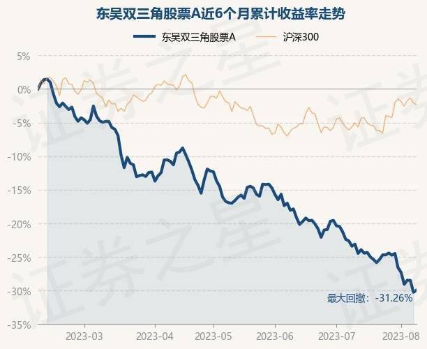 8月8日,东吴双三角股票A最新单位净值为0.5444元,累计净值为0.5444元,较前一交易日上涨0.44%。历史数据显示该基金近1个月下跌9.48%,近3个月下跌18.07%,近6个月下跌29.95%,近1年下跌33.05%。该基金近6个月的累计收益率走势如下图: