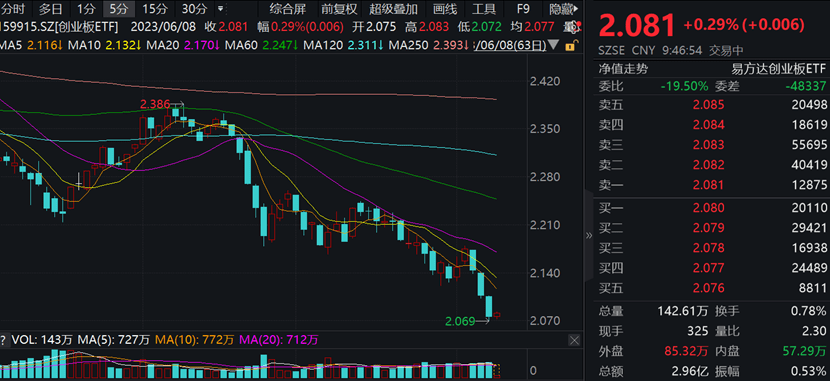 截至09:46,创业板ETF(159915)今日已涨0.29%,报2.081元,成交额已达2.96亿元,盘中交投活跃。数据显示,该基金最近3个交易日均实现资金净流入,合计“吸金”约21.02亿元。