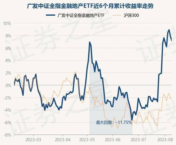8月8日,广发中证全指金融地产ETF最新单位净值为1.0081元,累计净值为1.0081元,较前一交易日下跌0.64%。历史数据显示该基金近1个月上涨11.24%,近3个月上涨0.28%,近6个月上涨7.24%,近1年上涨13.38%。该基金近6个月的累计收益率走势如下图: