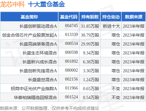 根据2023半年报公募基金重仓股数据,重仓该股的公募基金共9家,其中持有数量最多的公募基金为长盛创新驱动混合A。长盛创新驱动混合A目前规模为6.49亿元,最新净值1.917(8月7日),较上一交易日上涨0.04%,近一年下跌16.02%。该公募基金现任基金经理为王远鸿。王远鸿在任的基金产品包括:长盛高端装备混合A,管理时间为2021年8月26日至今,期间收益率为-4.16%;长盛生态环境混合,管理时间为2021年8月26日至今,期间收益率为-9.19%;长盛创新先锋混合A,管理时间为2021年8月26日至今,期间收益率为-11.25%;长盛盛世混合A,管理时间为2021年12月27日至今,期间收益率为-4.36%。