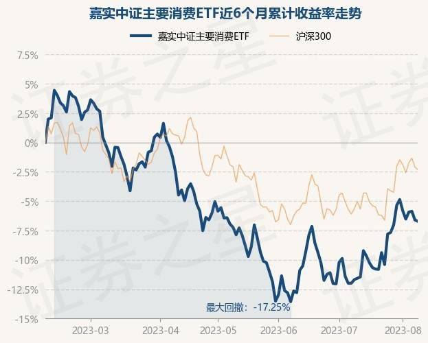 8月8日,嘉实中证主要消费ETF最新单位净值为0.8284元,累计净值为4.142元,较前一交易日下跌0.13%。历史数据显示该基金近1个月上涨6.0%,近3个月下跌0.26%,近6个月下跌6.67%,近1年下跌7.33%。该基金近6个月的累计收益率走势如下图: