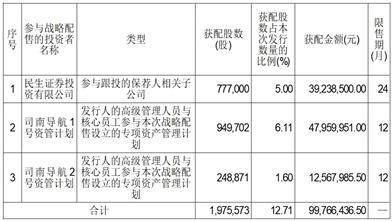 (2)发行人的高级管理人员与核心员工参与本次战略配售设立的专项资产管理计划:包括民生证券司南导航战略配售1号集合资产管理计划(以下简称“司南导航1号资管计划”)和民生证券司南导航战略配售2号集合资产管理计划(以下简称“司南导航2号资管计划”)(以下合称“司南导航专项资管计划”)。