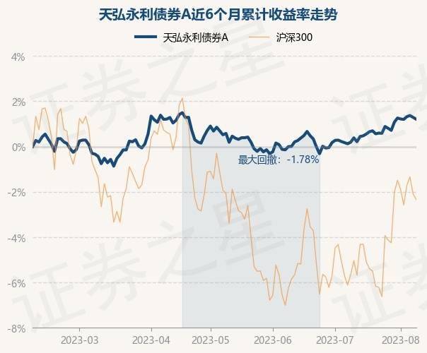 8月8日,天弘永利债券A最新单位净值为1.1932元,累计净值为1.9175元,较前一交易日下跌0.08%。历史数据显示该基金近1个月上涨1.1%,近3个月上涨0.37%,近6个月上涨1.24%,近1年上涨1.89%。该基金近6个月的累计收益率走势如下图:
