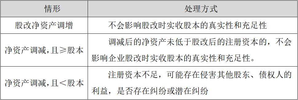 实践中存在因财务审计追溯调整导致有限公司整体变更基准日净资产发生变化的情形,股改净资产追溯调整通常分为以下三种情形:
