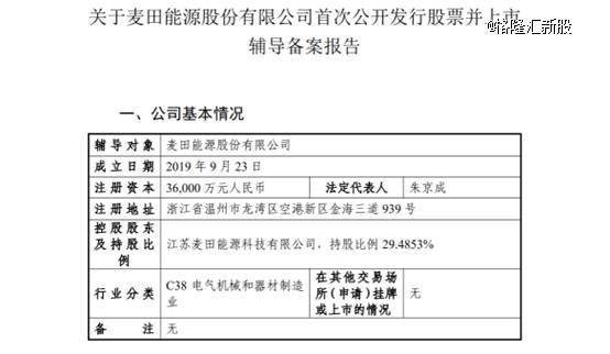 7月23日,麦田能源股份有限公司(简称:麦田能源)在浙江证监局进行辅导备案登记,辅导机构为中信证券。