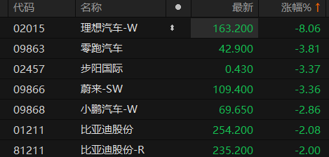 原标题:港股汽车股集体承压 理想汽车-W跌超8%