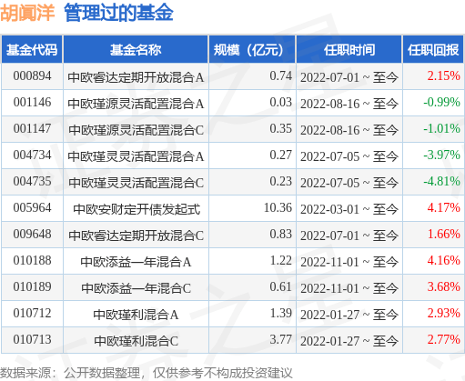 2023年8月9日,中欧琪福混合(014759)发布公告,增聘胡阗洋为基金经理,任职日期自2023年8月9日起,变更后中欧琪福混合(014759)的基金经理为胡琼予,胡阗洋。截止2023年8月8日,中欧琪福混合净值为1.0194,近一年上涨0.18%。