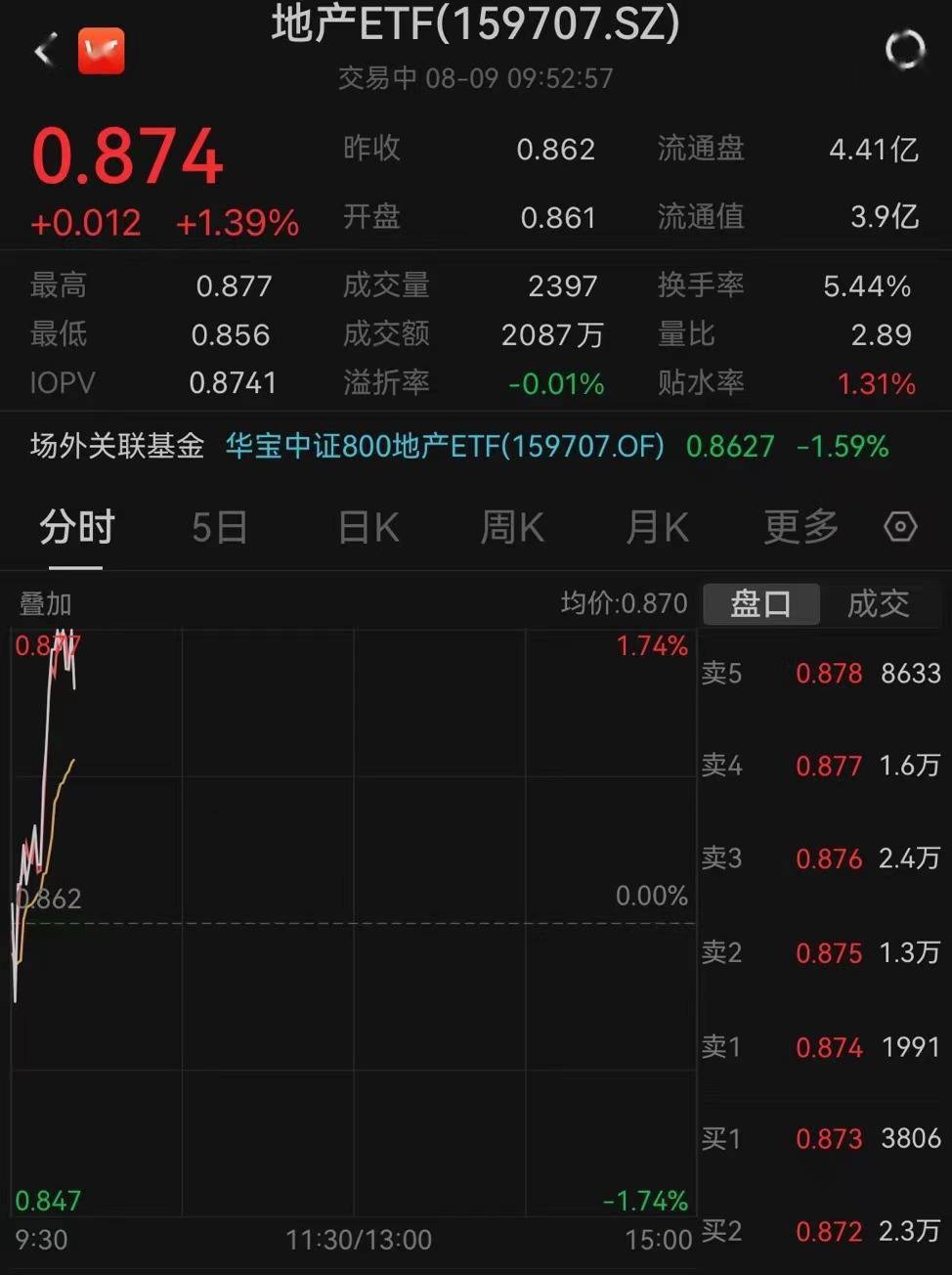 表征A股龙头房企行情的地产ETF(159707)早盘快速拉升,现场内价格涨超1.7%。