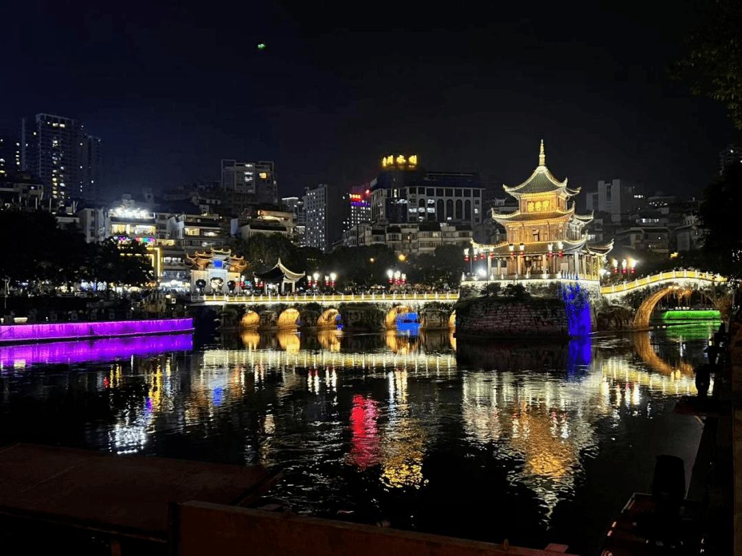 夜晚,贵阳地标性建筑“甲秀楼”仍是游客攒动。李叶/摄