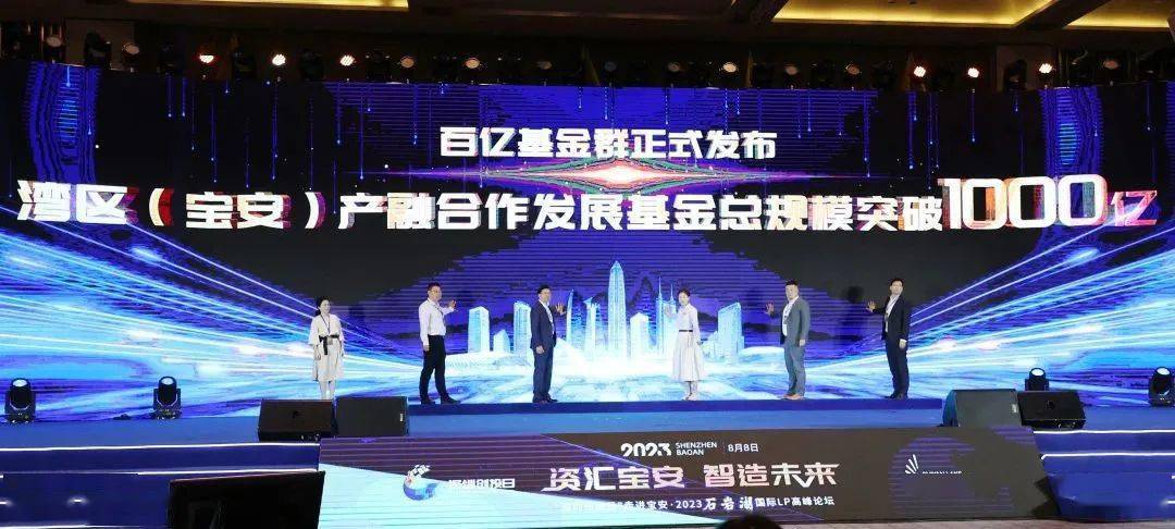 8月8日,在“深圳创投日”走进宝安·2023石岩湖国际LP高峰论坛活动现场,伴随着中国科技产业投资管理有限公司董事长孙华,深圳市同创伟业资产管理股份有限公司CEO、创始合伙人黄荔,深圳市创新投资集团有限公司副总裁李守宇,中金资本运营有限公司董事总经理杨刘,苏州工业园区元生创业投资管理有限公司合伙人班博,深圳市英诺厚德基金管理有限公司合伙人刘溪等6家知名投资机构负责人共同走上舞台按下启动电子按钮,一个新的百亿基金群在宝安宣告成立。
