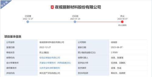 8月7日, 深交所官网信息显示, 夜视丽新材料股份有限公司在创业板的IPO申请被终止。