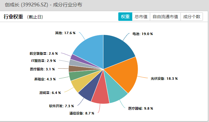 创业板成长ETF(159967),主要投资创业板中成长、弹性双优股票,持仓行业主要分布于电池19%、光伏设备18.3%、医疗器械9.8%、通信设备8.7%、软件开发7.3%、游戏6.4%。