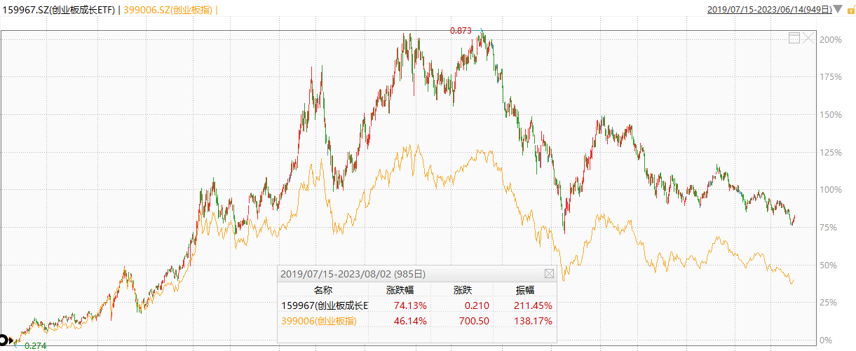 业绩方面,上市以来在成长、动量选股策略加持下创业板成长ETF表现好于创业板指数,截止最新累计涨幅74.13%,同期创业板指数46.14%,超额收益近28%。