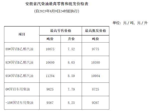 8月9日24时,国内新一轮成品油调价窗口将开启。记者从安徽省发改委获悉,89号汽油最高零售价从7.35元/升调整至7.52元/升。92号汽油最高零售价从7.84元/升上调至8.03元/升。95号汽油最高零售价从8.39元/升调整到8.59元/升。