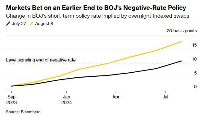 日本央行放松对基准10年期国债收益率的控制,正开始动摇市场对短期借贷成本的前景,掉期交易员押注,日本央行将最短在8个月内就会结束负利率政策。