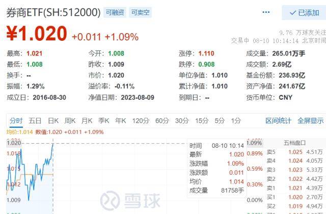 8月10日,券商早盘低开,短暂震荡后再度尝试冲锋,个股接续翻红上涨,红塔证券拉升涨停,锦龙股份涨逾7%,东吴证券涨近4%,国联证券、光大证券张超2%,广发证券、东方财富、兴业证券等涨幅居前。券商ETF(512000)场内价格现涨1.09%,成交额2.69亿元