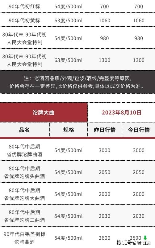 *价格说明:《老酒通》为信息交流服务平台,所发布的商品价格均为参考价,与市场成交价存在一定价差,仅供酒商酒友参考。因老酒价格受酒体、品相、包装、完整度、储存、市场库存等因素影响,即使是同款产品价格也会有所差距,还请知悉。