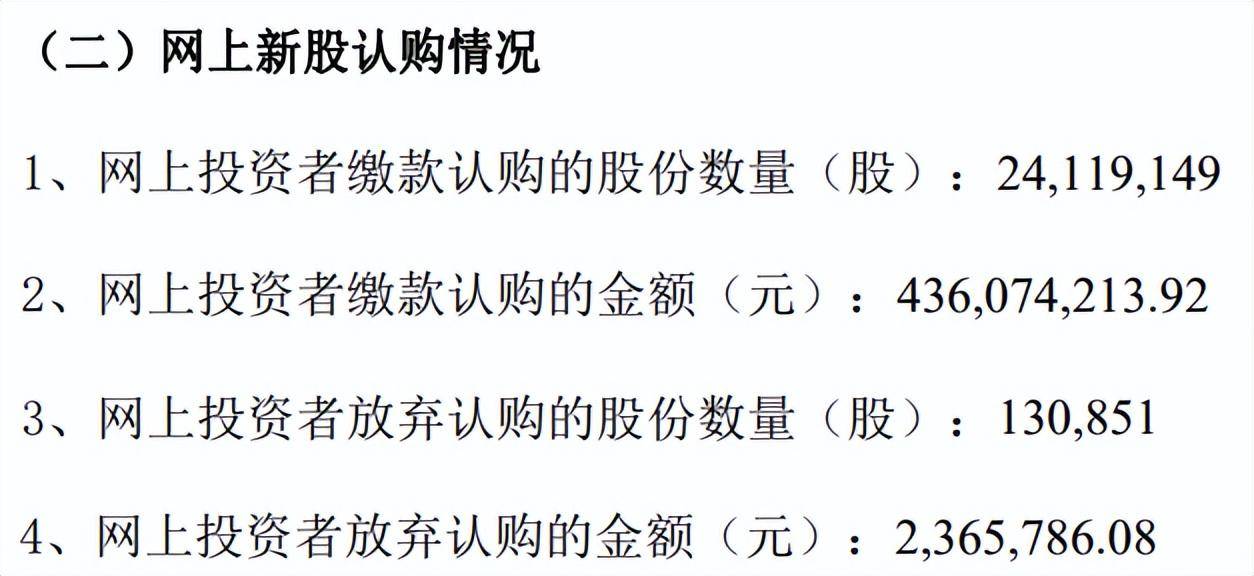 据蓝箭电子的上市发行结果公告显示,网上投资者缴款认购的股数为2411.91万股,放弃认购的股数为13.08万股,涉及金额仅为236.57万元。