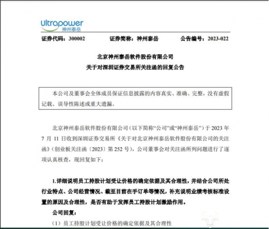 7月17日,神州泰岳对上交所的关注函进行了回复。主要有以下几点,本次员工持股计划的股份来源为公司回购专用账户回购的股份,员工持股计划受让价格未违反法律法规还参考了行业特点;员工持股计划购买价格有利于公司持续发展,审议合规并参考市场;业绩考核标准设置的合理性参考行业特点;董事长冒大卫不存在利益输送,在方案中的占比与其贡献程度匹配。
