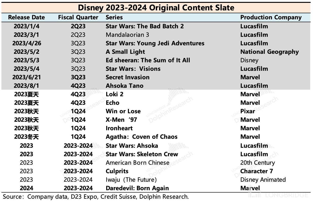 流媒体需要剧集来支撑订阅粘性,但更擅长的是电影,因此以往更偏向于将经典老剧搬运到 Disney+ 上。从后续的 Pipeline 中看,虽然不乏一些漫威 IP 的剧集,但月初被爆出正在削减漫威剧集的投资,或有可能会影响这些储备剧集的上线计划。