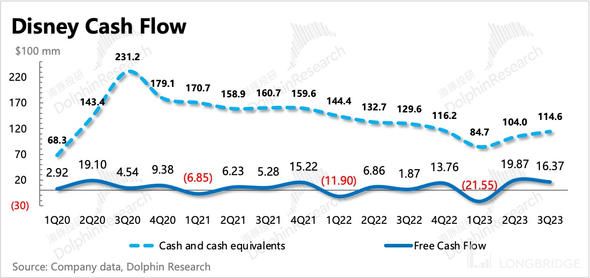 随着管理层对盈利要求的进一步提升,现金流这块不用特别担心,相比而言,收入端何时出现经营拐点,尤其是 Disney+ 等 DTC 业务何时能够挑起大梁,才是关键。