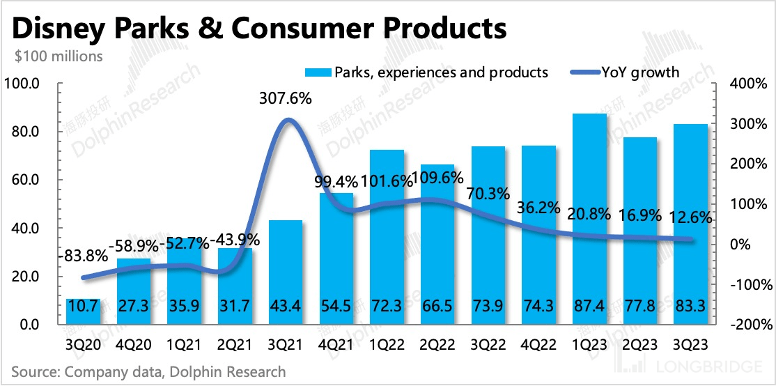 因此除了关注这次的电话会中管理层对经营战略的有关描述外,海豚君建议仍然继续等待真正的拐点。尤其是在这一轮的内容周期尾声、主题公园高基数下增长压力较大的阶段,看公司如何恢复流媒体的成长性,来弥补传统渠道的衰落,重新带来新的增长故事。