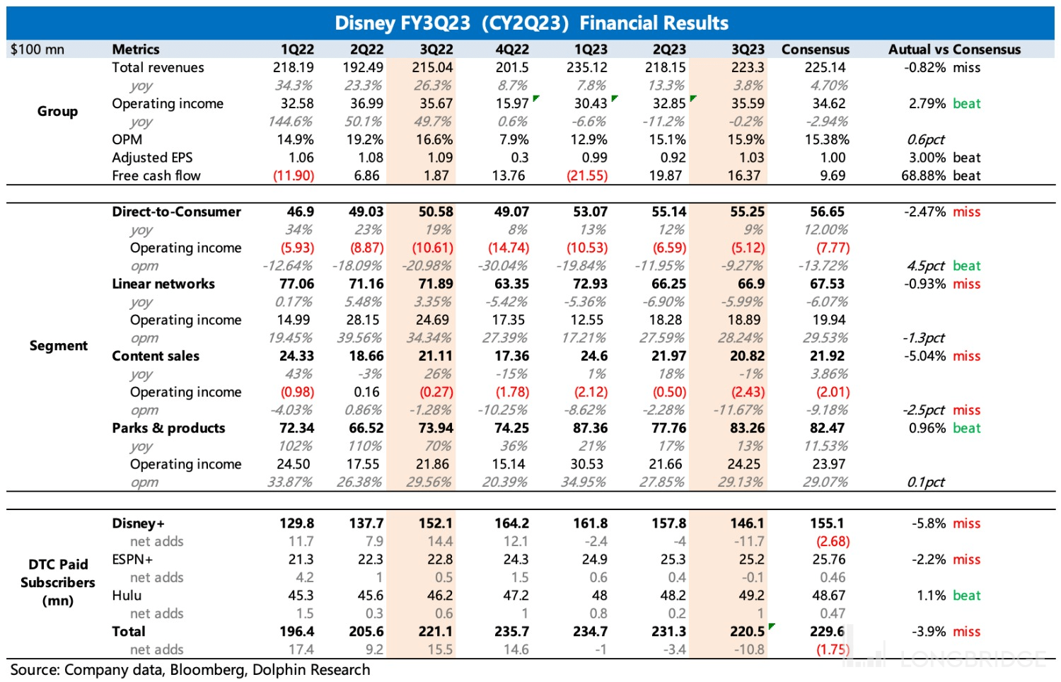 因此海豚君会围绕 7 月初 Iger 的讲话来解读这次财报,同时也建议的投资者,尤其关注这次的电话会,预计 Iger 会在电话会上针对后续的经营计划着重放料,这能够帮助判断的真正经营拐点。