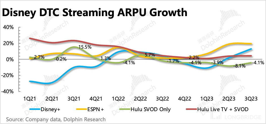 三季度公司继续通过提价缓解了用户流失对收入的增长压力,电话会上,管理层透露还将继续对 Disney+ 和 Hulu 进行提价。