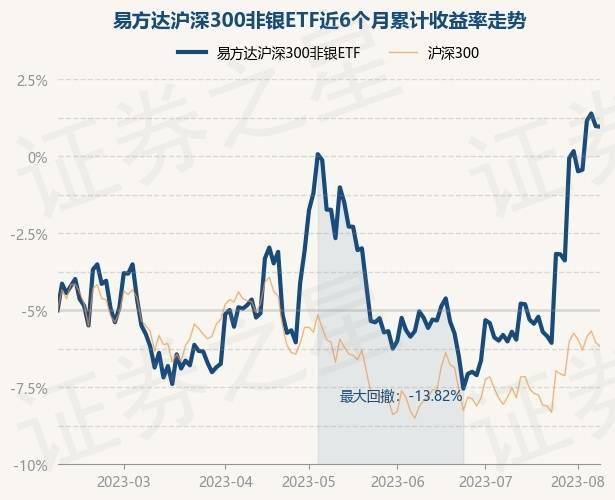 8月8日,易方达沪深300非银ETF最新单位净值为0.7171元,累计净值为2.1513元,较前一交易日下跌0.03%。历史数据显示该基金近1个月上涨13.72%,近3个月上涨1.59%,近6个月上涨11.87%,近1年上涨22.75%。该基金近6个月的累计收益率走势如下图: