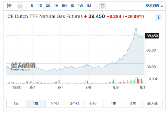 昨日晚间,多个海外天然气期货品种集体大涨,NYMEX天然气期货价格一度上涨超8%,盘中最高报价3.018美元/百万英热,创下今年3月3日以来盘中最高价。欧洲天然气期货盘中最高上涨40%,为2022年3月以来最大涨幅,截至发稿仍上涨25%以上。