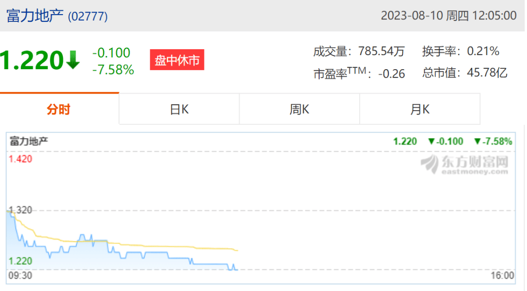 二级市场上,截至午间收盘,富力地产跌超7%,报1.22港元。