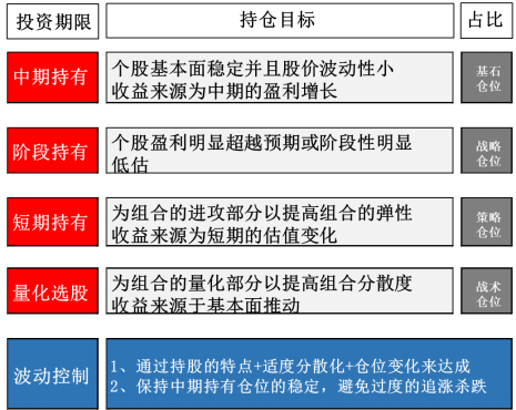 他把仓位分成了基石、战略、策略、战术四个维度,分别对应着不同的持有期限,再根据市场情况适时调整比例,以确保组合永远处于攻守兼备的状态。