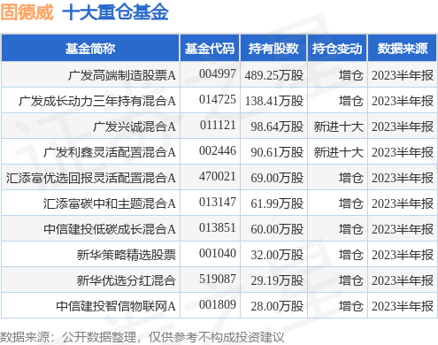 根据2023半年报公募基金重仓股数据,重仓该股的公募基金共52家,其中持有数量最多的公募基金为广发高端制造股票A。广发高端制造股票A目前规模为107.33亿元,最新净值1.9519(8月9日),较上一交易日下跌0.34%,近一年下跌39.29%。该公募基金现任基金经理为郑澄然。郑澄然在任的基金产品包括:广发鑫享灵活配置混合A,管理时间为2020年5月20日至今,期间收益率为61.25%;广发兴诚混合A,管理时间为2021年1月6日至今,期间收益率为-37.01%;广发诚享混合A,管理时间为2021年2月8日至今,期间收益率为-36.09%。