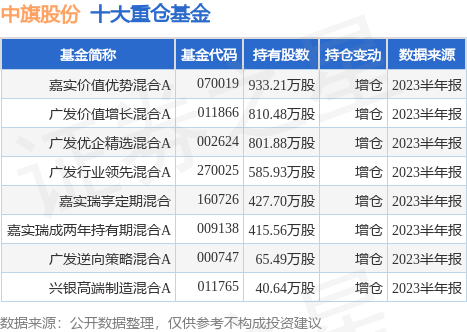 重仓中旗股份的公募基金请见下表: