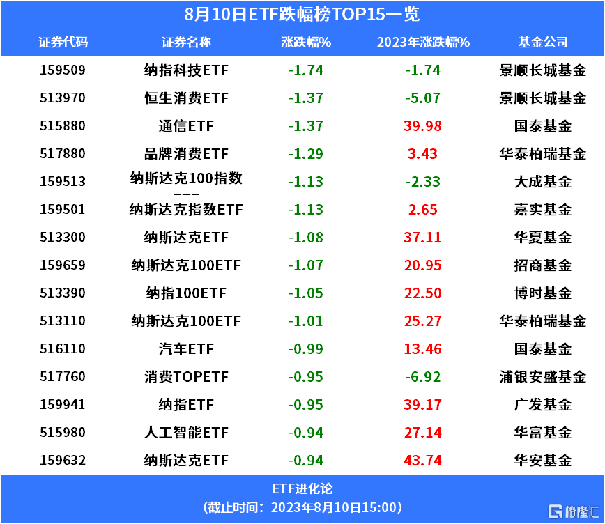 隔夜美股科技股大跌,景顺长城基金纳指科技ETF跌1.74%。AI概念股下挫,通信ETF跌1.37%、人工智能ETF跌0.94%。汽车板块走弱,汽车ETF跌0.99%。