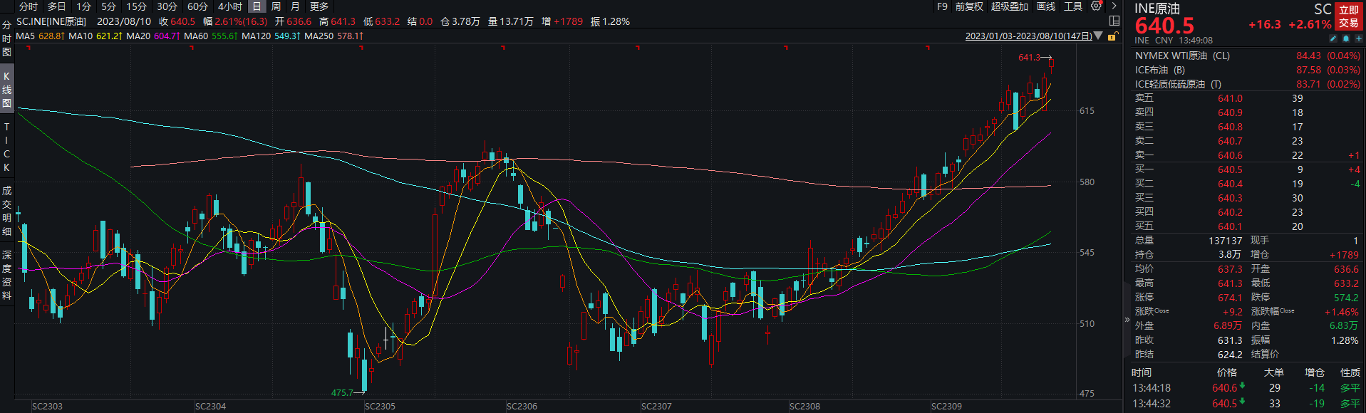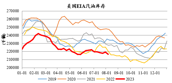 国联期货贾万敬对和讯财经表示,7-9月份是美国成品油需求旺季,美国商业原油库存和汽油库存通常会出现持续下降,美国汽油库存低于往年同期,预计今后一段时间仍将进一步下降。在需求旺季阶段,沙特在6月初额外减产100万桶/日,7月和8月初两次延长限产时间,将自愿减产100万桶的计划延长至9月底。俄罗斯承诺在8月份减产石油出口50万桶,9月减少石油出口30万桶/日。在需求旺季,沙特额外自愿减产、俄罗斯承诺削减原油出口,造成全球原油市场供应紧张,是近期国内原油期货上涨的主要原因。