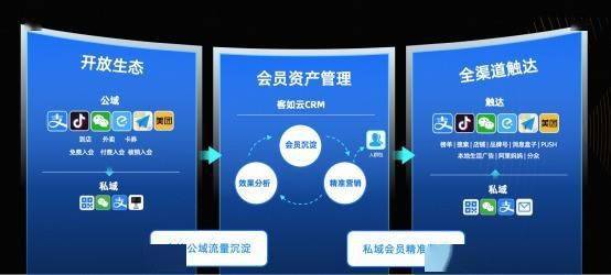 客如云在“公转私”方面有丰富的经验,能够通过小程序和CRM营销系统,帮商家将抖音等平台吸引来的流量转化为商家自有流量,从而更精准的进行会员管理,形成一整套完整的拉新-引流-获客-复购的数字化升级链路。