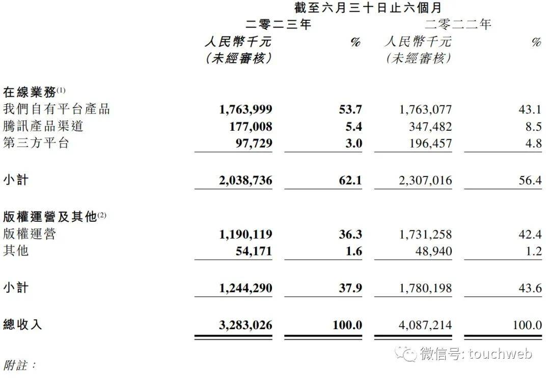财报显示,阅文集团2023年上半年在线业务营收为20.39亿元,较上年同期的23亿元下降11.6%。在线业务营收占阅文总营收的比例为62.1%。