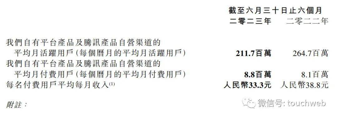 截至2023年6月30日止6个月,阅文自有平台产品及自营渠道的平均月活跃用户由2.647亿人同比减少20.0%至2.117亿人。
