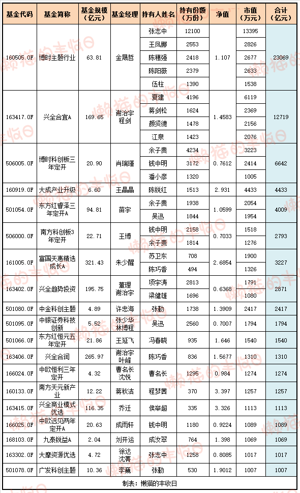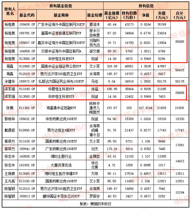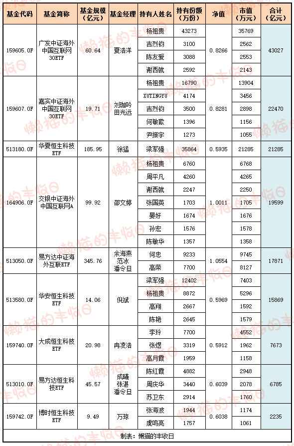 不知道几位“杨祖贵”是不是同一个人,买了3只互联网基金,价值7.3亿元。