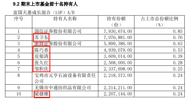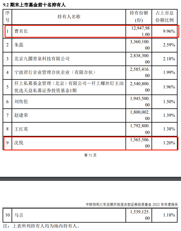 基金十大持有人中有9位都是自然人,且前5大持有人持有的市值都超过1000万元,合计2.3亿。