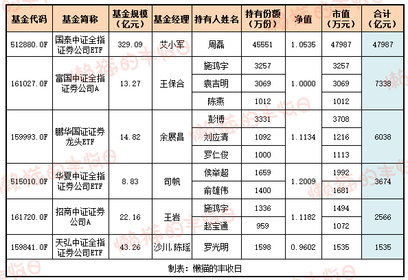 几只券商指数基金,合计也被买了6.9个亿。