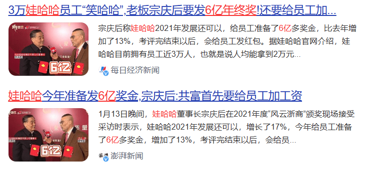 值得一提的是,这不是娃哈哈第一次因给员工发福利而广受好评,此前娃哈哈发6亿年终奖消息曾刷屏网络,宗庆后多次在公开场合呼吁企业要给员工涨工资也引发网友强烈共鸣,据透露娃哈哈在寸土寸金的市中心为员工建造的人才公寓也将在今年迎来交付。