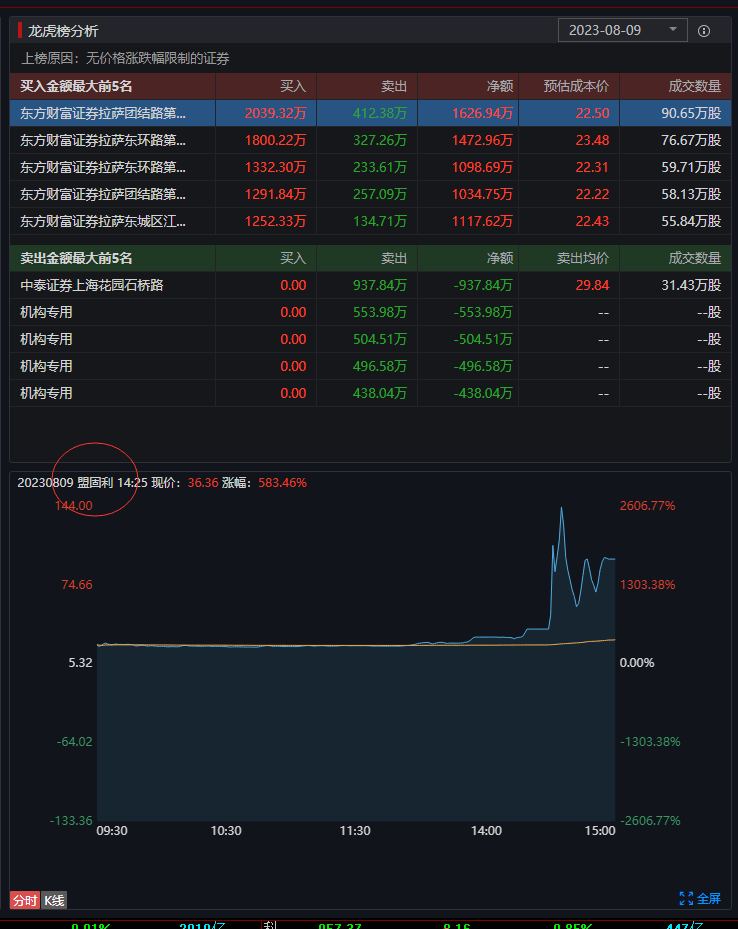 盘后龙虎榜数据显示,4家机构专用席位净卖出N盟固利1993.11万元,买入前五席位均为东方财富拉萨证券营业部。