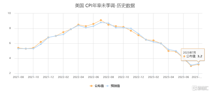 8月10日周四,美国劳工统计局公布的数据显示,美国7月CPI同比上涨3.2%,不及预期的3.3%,但高于前值3%,为2022年6月以来首次加速。