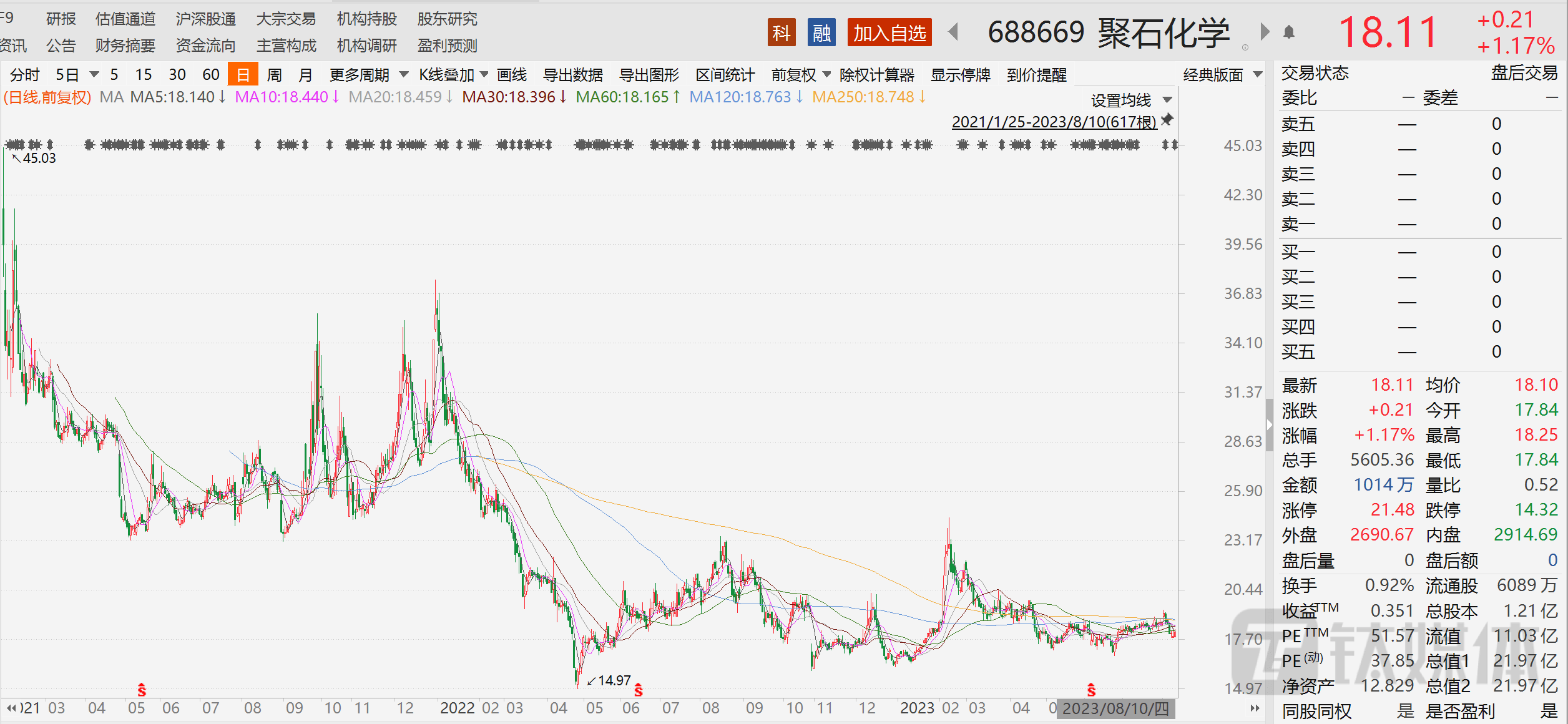 二级市场方面,截至8月10日收盘,公司股价报收18.11元,上涨1.17%,总市值为21.97亿元。值得注意的是,公司当前股价较年内高点24.48元,已跌去20%左右。