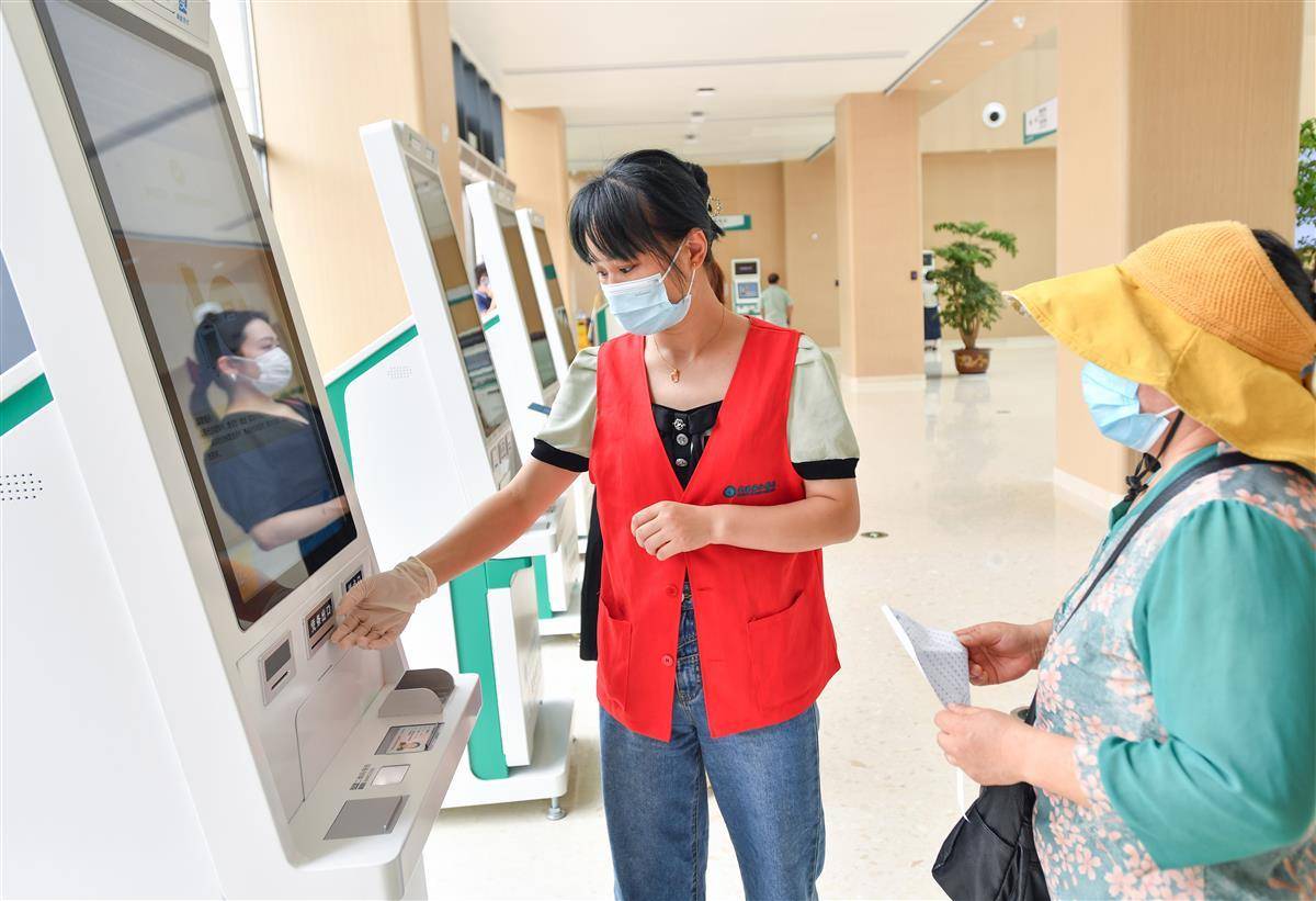 极目新闻记者在现场看到,门诊大厅按照患者的动线做了设计,中间是一站式服务中心,方便咨询。同时,大厅设置了十多台自助设备,可提供患者挂号、报到、缴费等服务,真正实现“数据网上走、患者少跑腿”。据介绍,整栋楼的自助设备约有100台,旁边有“红马甲”提供帮助。