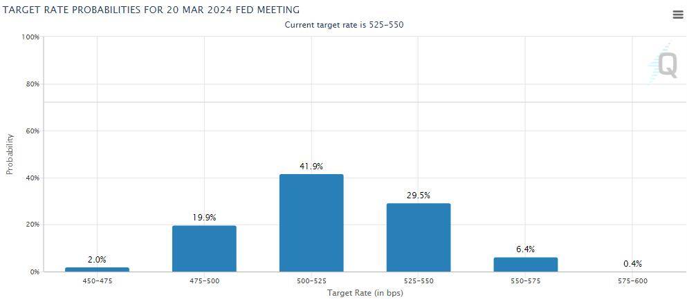 CME的该工具还显示,到明年3月,至少有一次25个基点的降息或更多降息的概率合计超过60%、接近64%。