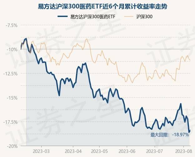 8月8日,易方达沪深300医药ETF最新单位净值为0.4199元,累计净值为1.6796元,较前一交易日上涨0.5%。历史数据显示该基金近1个月下跌0.28%,近3个月下跌8.0%,近6个月下跌16.74%,近1年下跌16.42%。该基金近6个月的累计收益率走势如下图:
